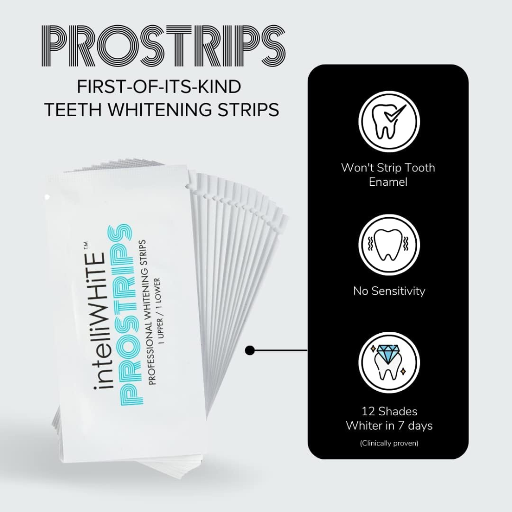 Prostrips are the first-of-their-kind enamel-safe whitening strips, clinically tested to deliver professional results without harming your teeth. In clinical studies, 100% of participants saw noticeable whitening in just 7 days, with an average of 12 shades whiter smiles. Formulated with essential minerals like calcium and phosphate, these strips not only whiten but also nourish and strengthen enamel, reducing the risk of sensitivity. With a dentist-developed formula and advanced Super-Grip technology, Prostrips stay in place while delivering a brighter, healthier smile.